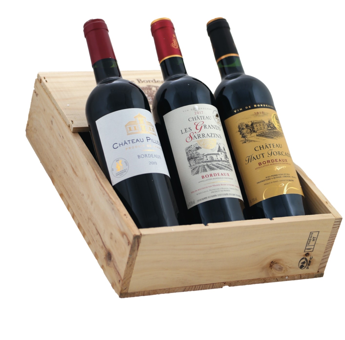 Ontdek Bordeaux Sélection, een trio van stijlvolle rode Bordeauxwijnen in een prachtige houten kist. Deze wijnen combineren kracht en elegantie, met fruitige aroma's en een boeiende, aardse diepte die blijft intrigeren tot de laatste slok. Ideaal voor de klassieke wijnliefhebber.